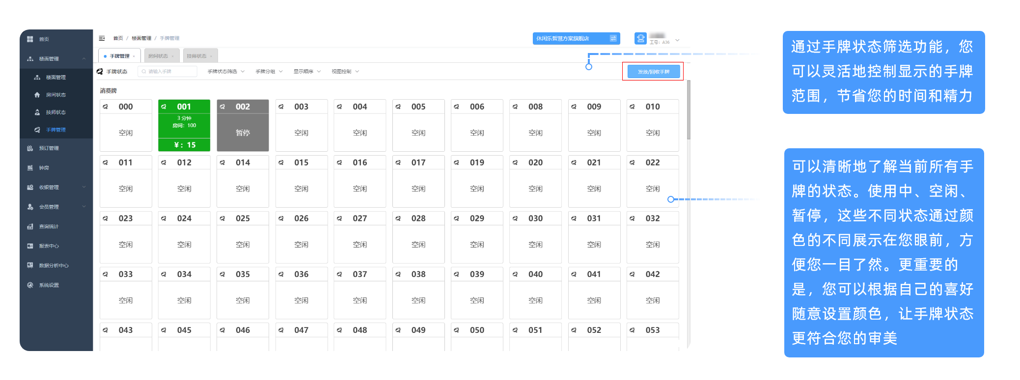 - 我们的系统还具备发放与回收手牌的功能。您可以方便地将手牌分配给合适的使用者,并随时进行回收。这样,您可以在不浪费任何资源的情况下,高效地管理和利用手牌。
