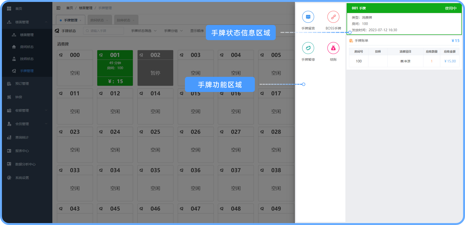 - 消费牌留言管理:为每个手牌添加留言功能,方便用户在结账时记录需要注意的事项或特殊需求,方便在拿到手牌时,系统会自动提示用户手牌上的留言内容,帮助用户快速了解相关信息