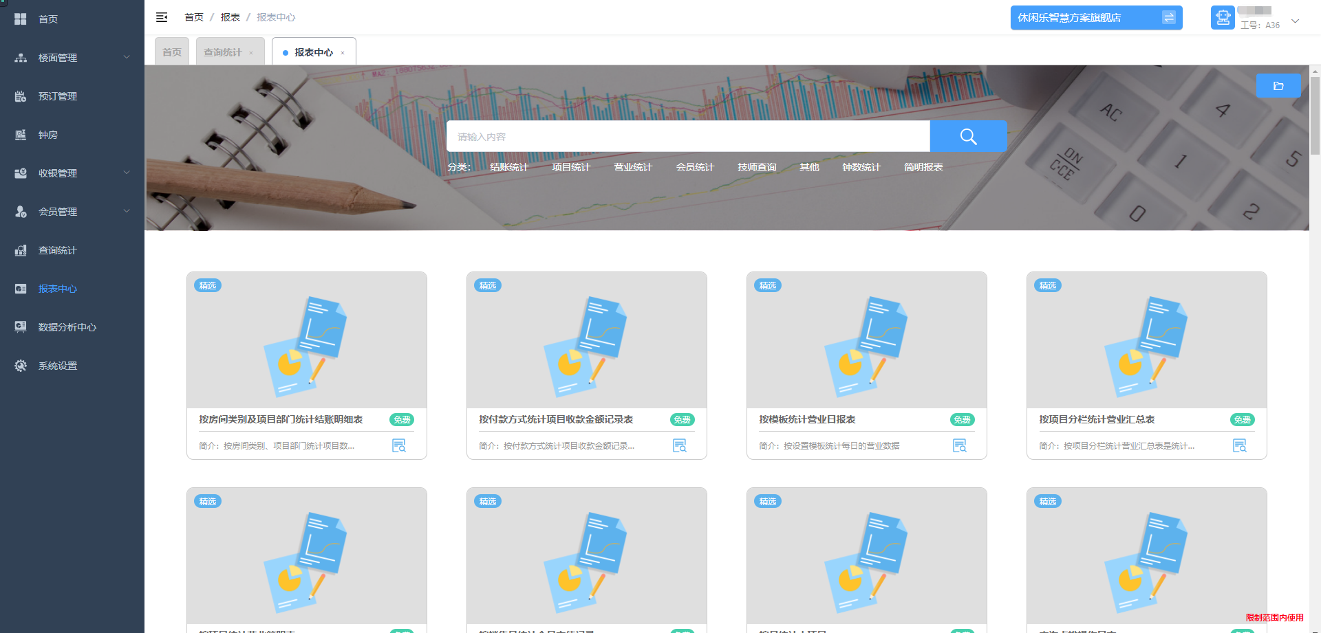 报表中心可以帮助您查看各种统计报表,包括结账报表、营业报表、技师报表、项目报表和会员报表。通过这些报表,您可以了解到关于结账情况、营业收入、技师业绩、项目销售情况以及会员统计等方面的详细信息。您可以选择特定的报表进行查看,并根据需要进行筛选和排序,以便更好地分析和管理相关数据。报表中心为您提供了全面和详尽的数据支持,有助于您进行业务决策和管理分析。